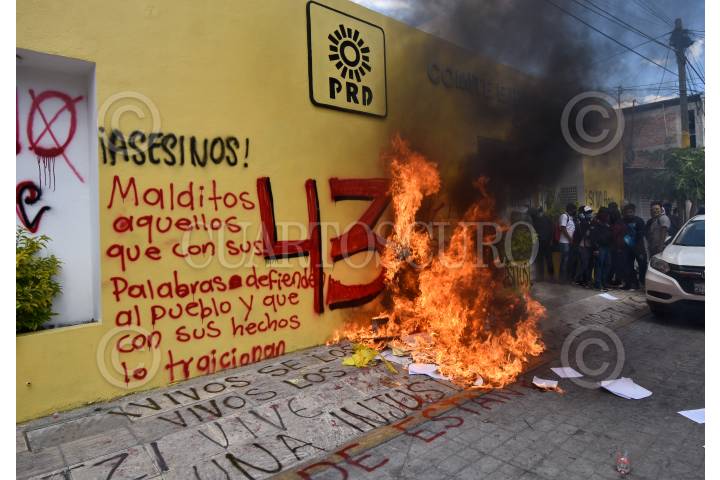 Estudiantes de la Normal Rural, “Raúl Isidro Burgos” de Ayotzinapa, vandalizaron la sede del Comité Ejecutivo Estatal (CEE) del partido de la Revolución Democrática