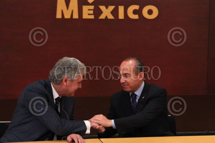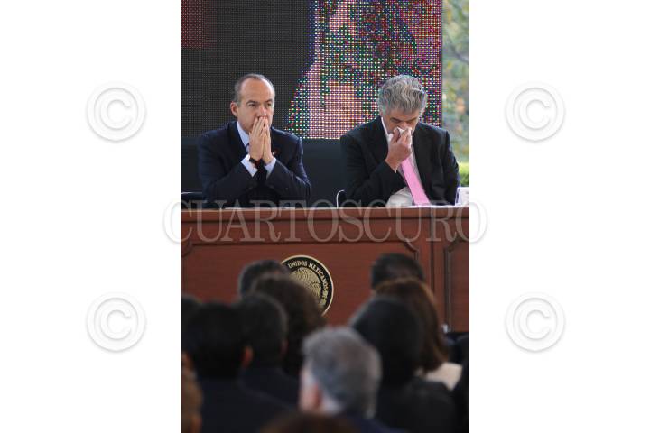 MÉXICO, D.F., 11DICIEMBRE2009.- Felipe Calderón Hinijosa, Presidente del país y Alfredo Elias Ayub en el evento denominado Luz sustentable que se efectuo en la explanada del monumento a don Francisco I. Madero de la residencia oficial de los Pinos. FOTO: MARCO POLO GUZMÁN HERNÁNDEZ/CUARTOSCURO.COM