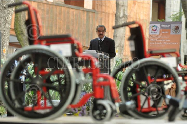MÉXICO, D.F., 10NOVIEMBRE2010.- Jose Angel Córdova Villalobos, Secretario de Salud, entrego un donativo de 150 sillas de ruedas a diferentes organizaciones. FOTO: EDUARDO MORALES/CUARTOSCURO.COM