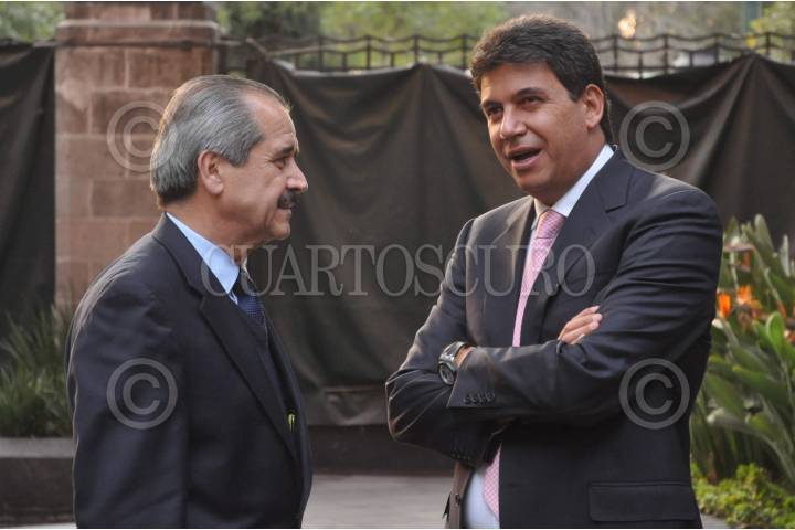MÉXICO, D.F., 08AGOSTO2011.- Arturo Elías Ayub, Director de Alianzas Estratégicas de Telmex junto a Heriberto Felix Guerra, Secretario de Desarrollo Social durante la conferencia para dar los pormenores de la copa TELMEX. FOTO: ENRIQUE ORDÓÑEZ/CUARTOSCURO.COM