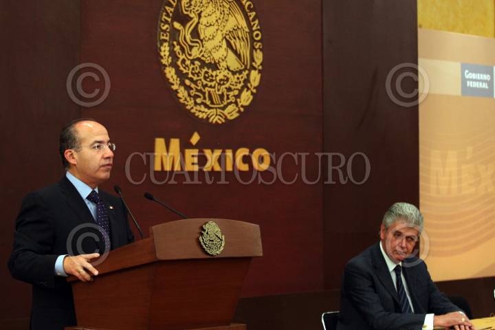 MÉXICO, D.F., 24MARZO2011.- Felipe Calderón Hinojosa, presidente de México, anunció ante los medios de comunicación la renuncia de Alfredo Elías Ayub como director general de la Comisión Federal de Electricidad (CFE), su lugar lo ocupará Antonio Vivanco Casamadrid. Ésto se realizó en el Salón Manuel Ávila Camacho de la Residencia Oficial de Los Pinos. FOTO: FRANCISCO SANTOS/CUARTOSCURO.COM