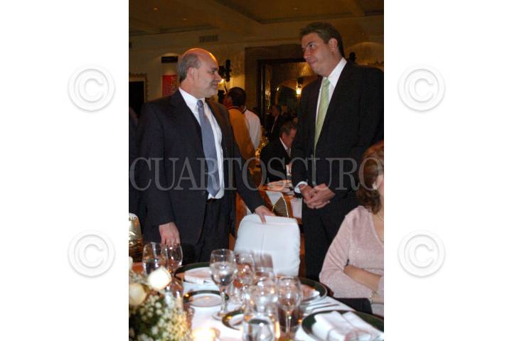 MEXICO, D.F. 11NOVIEMBRE2004.- Eduardo Sojo, director de Políticas Públicas de Presidencia y Arturo Elias Ayud, titular de Luz y Fuerza del Centro, durante el festejo del 25 aniversario de la revista "Mundo Ejecutivo", celebrado en la Hacienda de los Morales. FOTO: Sandra Perdomo/CUARTOSCURO.COM