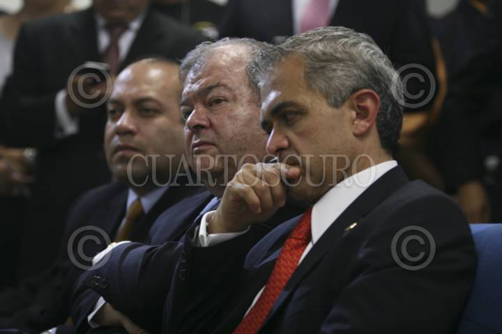 MÉXICO, D.F., 30NOVIEMBRE2011.- Miguel Ángel Mancera, Procurador Capitalino y Edgar Elías Azar, Presidente del Tribunal Superior de Justicia y del Consejo de la Judicatura del D.F. dieron a conocer los detalles de Sistema para el Intercambio de Información sobre las Causas Penales con Detenidos. FOTO: GUILLERMO PEREA/CUARTOSCURO.COM