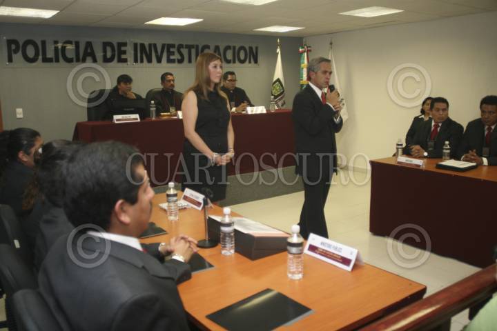 MÉXICO, D.F., 01SEPTIEMBRE2011.- Miguel Ángel Mancera, procurador de justicia del D.F., Edgar Elías Azar, presidente del tribunal superior de justicia del D.F. y Julio Cesar Moreno, diputado local, inauguraron la sala de juicios orales de la policía de investigación. FOTO: SAÚL LÓPEZ/CUARTOSCURO.COM