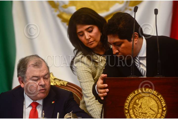 MÉXICO, D.F., 20SEPTIEMBRE2011.- Edgar Elías Azar, presidente del Tribunal Electoral del Distrito Federal y Alejandra Barrales, presidenta de la ALFD, durante el V Informe de Gobierno de Marcelo Ebrard Casaubón, que se realizó en la ALDF ante la asistencia de personalidades de la política mexicana. FOTO: MISAEL VALTIERRA/CUARTOSCURO.COM
