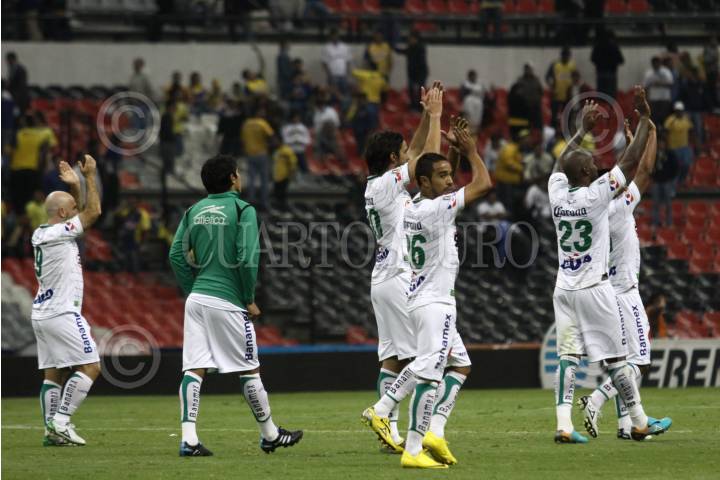 MÉXICO, D.F., 25NOVIEMBRE2010.- Jugadores del Santos Laguna festejan su victoria en contra de las Águilas del América al termino del encuentro de ida de las semifinales del torneo Apertura 2010 que se realizo en el estadio Azteca. Santos Laguna venció a las Águilas 2 goles por 1. FOTO: RODOLFO ANGULO/CUARTOSCURO.COM