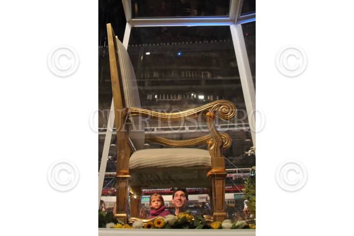 MÉXICO, D.F., 02ABRIL2011.- Un señor y su hija observan con emoción la silla que uso Juan Pablo segundo durante una de sus visitas por el pais en el homenaje que se le realizó a Juan Pablo II. FOTO: ENRIQUE ORDÓÑEZ/CUARTOSCURO.COM