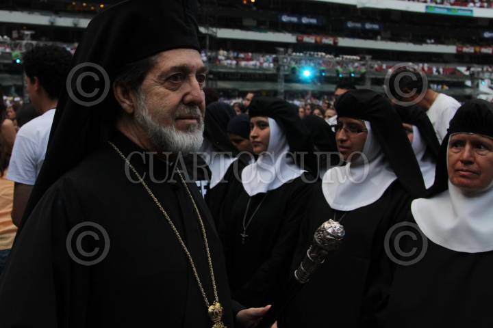 MÉXICO, D.F., 02ABRIL2011.- El cardenal Norberto Rivera Carrera, asistió al homenaje que se le rindo al Papa Juan Pablo II en el estadio Azteca. FOTO: ENRIQUE ORDÓÑEZ/CUARTOSCURO.COM