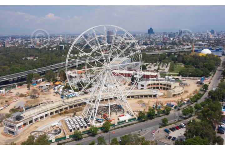 CIUDAD DE MÉXICO, 05SEPTIEMBRE2023.- Toma aérea de la Rueda de la Fortuna Aztlán 360 encendida por el jefe de gobierno de la Ciudad de México, Martí Batres Guadarrama, y José Miguel Bejos, presidente de Mota-Engil México, en el Parque Urbano Aztlán (antes Feria de Chapultepec) de la Segunda Sección del Bosque de Chapultepec. FOTO: GALO CAÑAS/CUARTOSCURO.COM