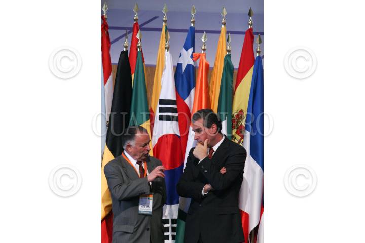 MÉXICO, D.F., 012OCTUBRE2009.- El ministro Mariano Azuela Guitrón, Paulino Rivera, presidente de las uniones Sociales de Empresarios de México y de la Ciudad de México durante la XXIII Congreso Mundial UNIAPAC.. FOTO: IVAN STEPHENS/CUARTOSCURO.COM
