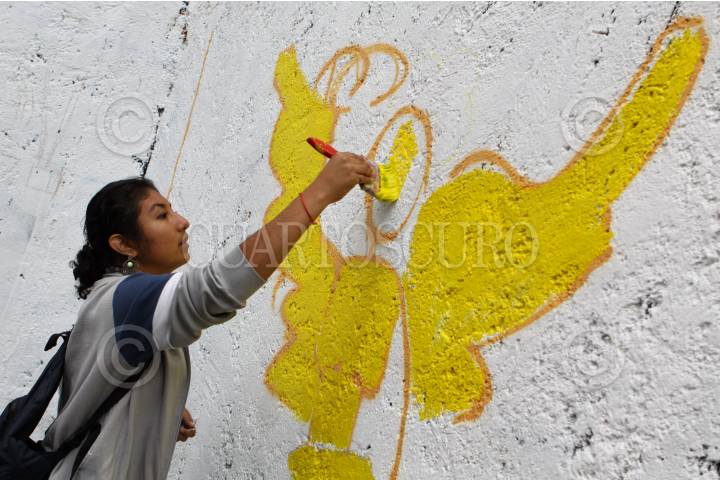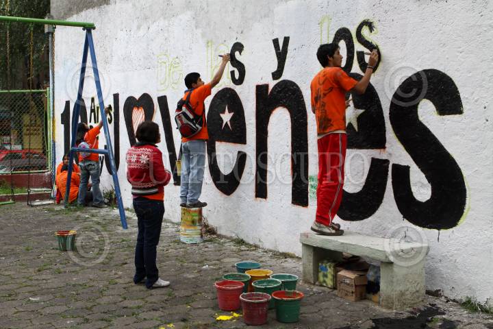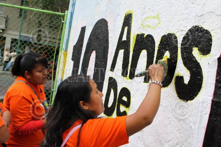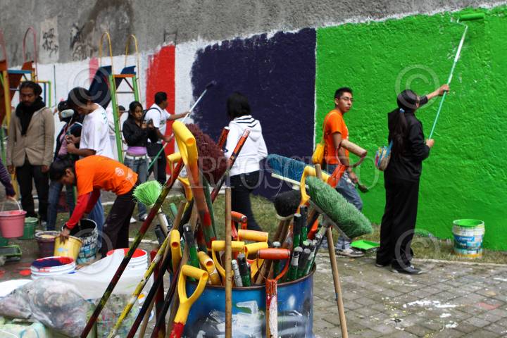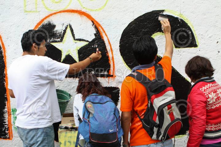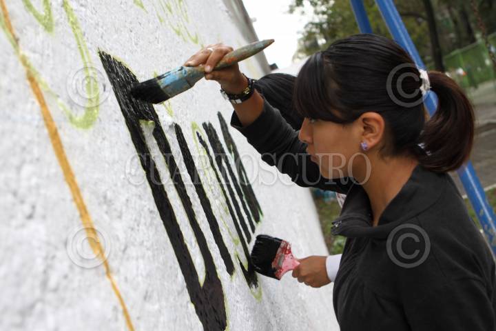 MÉXICO, D.F., 25SEPTIEMBRE2010.- Decenas de jóvenes realizaron un mural para conmemorar la celebración del X Aniversario de la Ley de las y los Jóvenes y los 14 derechos de las y los jóvenes en la calle de Eje 1 Norte José María Alzate y Mariano Azuela en la colonia Buenavista. FOTO: RODOLFO ANGULO/CUARTOSCURO.COM