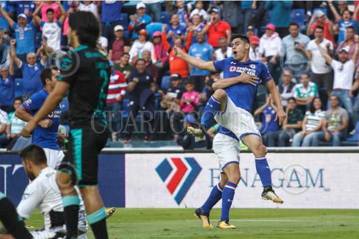 CIUDAD DE MÉXICO, 16SEPTIEMBRE2017.- Con goles de Felipe Mora y Christián "Chaco" Giménez, la Máquina de Cruz Azul ganó 2-1 en casa al Club Santos, en partido de la jornada 9 del Apertura 2017. FOTO: ISAAC ESQUIVEL /CUARTOSCURO.COM