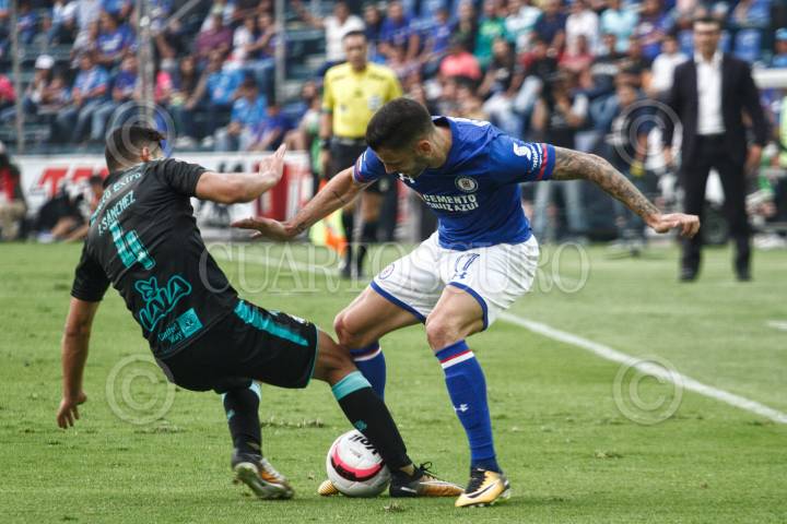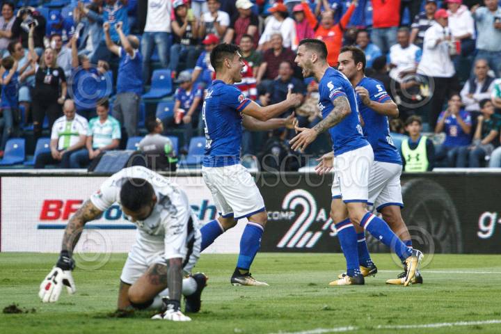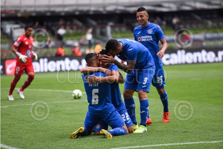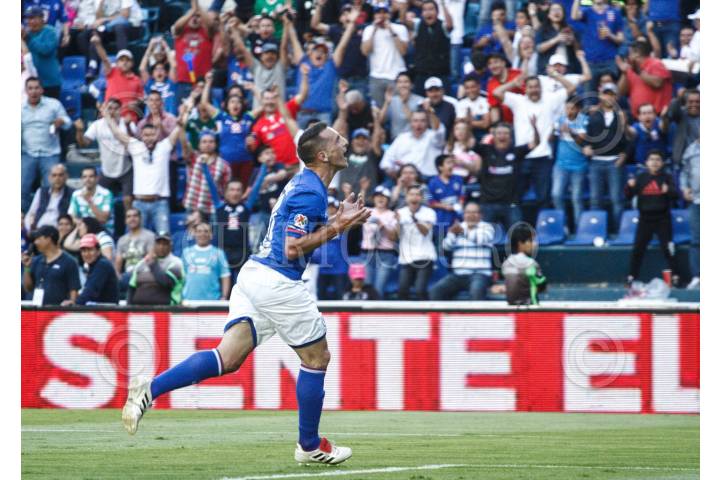 CIUDAD DE MÉXICO, 16MARZO2019.- En partido correspondiente a la Jornada 11 del Clausura 2019, la máquina celeste del Cruz Azul se enfrontó a los Tuzos del Pachuca en el estadio Azteca, el marcador fue favorable para los capitalinos con un resultado final de 4-1. FOTO: PEDRO ANZA /CUARTOSCURO.COM