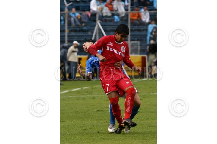 MÉXICO, D.F., 19SEPTIEMBRE2009.- Pablo Cesar Aguilar del San Luis pelea el balón con Emanuel Villa de la maquina celeste del Cruz Azul durante el encuentro de la jornada 9 del torneo Clausura 2009 que gano la maquina 4 goles a 2 en el estadio Azul. FOTO: RODOLFO ANGULO/CUARTOSCURO.COM