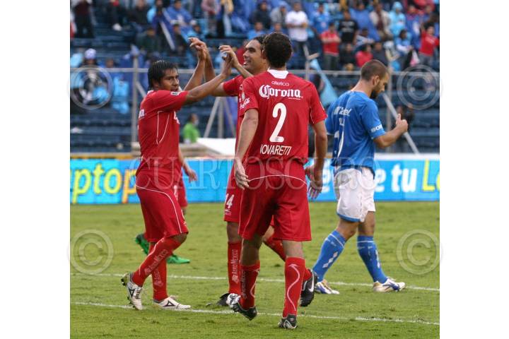 MÉXICO, D.F., 26SEPTIEMBRE2009.- Jugadores de los diablos del Toluca festejan su triunfo al termino del encuentro en contra del Cruz Azul en el partido de la jornada 10 del Tornero Apertura 2009; partido que gano Toluca 2 a 1 a los cementeros en el Estadio Azul. FOTO: RODOLFO ANGULO/CUARTOSCURO.COM