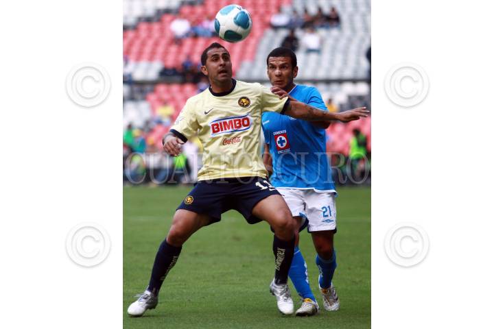 MÉXICO, D.F., 14FEBRERO2010.- Daniel Montenegro disputa el balon con Jaime Lozano durante el partido correspondiente de la jornada cinco del Torneo Bicentenario 2010, entre las Águilas del América y Cruz Azul. FOTO: SÁSHENKA GUTIÉRREZ/CUARTOSCURO.COM