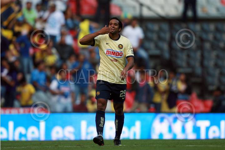 MÉXICO, D.F., 14FEBRERO2010.- Jean Beasejour festejo su anotación a gol durante el partido correspondiente de la jornada cinco del Torneo Bicentenario 2010, entre las Águilas del América y Cruz Azul. FOTO: SÁSHENKA GUTIÉRREZ/CUARTOSCURO.COM
