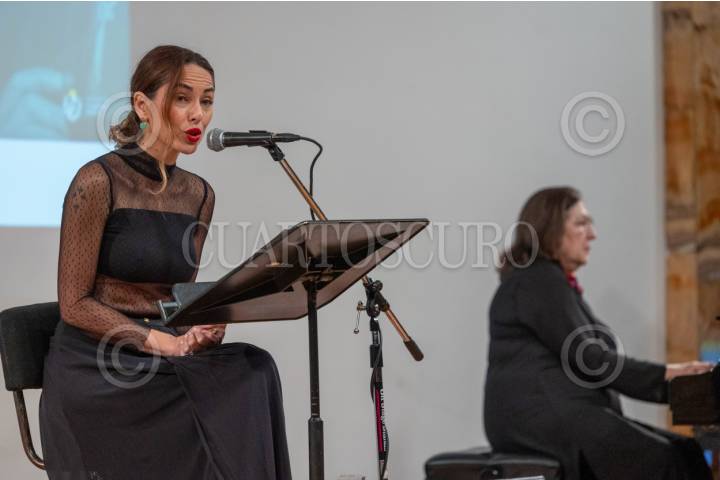 CIUDAD DE MÉXICO, 13ABRIL2025.- La actriz Barbara Mori y la pianista María Teresa Frenk encabezaron el recital "Galeano, 10 años después", esto a diez años de la partida del escritor uruguayo, Eduardo Galeano, que se llevó a cabo en la Sala Manuel M. Ponce, en el Palacio de Bellas Artes. FOTO: MOISÉS PABLO/CUARTOSCURO.COM