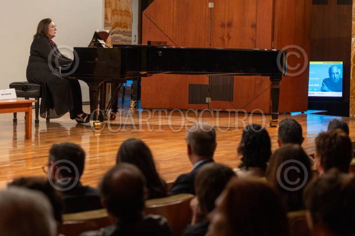 CIUDAD DE MÉXICO, 13ABRIL2025.- La pianista María Teresa Frenk durante el recital "Galeano, 10 años después", esto a diez años de la partida del escritor uruguayo, Eduardo Galeano, que se llevó a cabo en la Sala Manuel M. Ponce, en el Palacio de Bellas Artes. FOTO: MOISÉS PABLO/CUARTOSCURO.COM