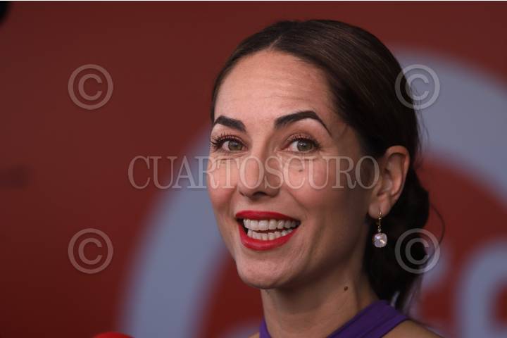 La actriz, Bárbara Mori, es entrevistada por los medios de comunicación que se dieron cita.