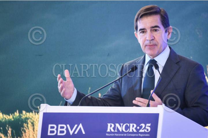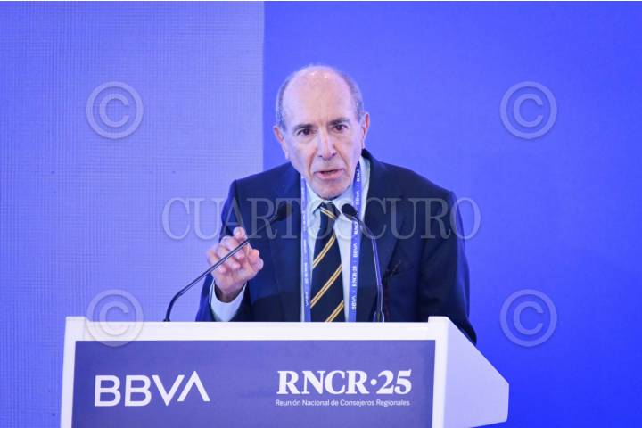 CIUDAD DE MÉXICO, 27MAYO2025.- Carlos Torres Vila, presidente de Grupo BBVA, durante su participación en la Reunión Nacional de Consejeros Regionales (RNCR) 2025 realizado en una cadena hotelera en Polanco. FOTO: MARIO JASSO/CUARTOSCURO.COM