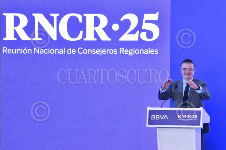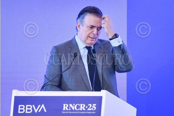 CIUDAD DE MÉXICO, 27MAYO2025.- Marcelo Ebrard, secretario de Economía, durante su participación en la Reunión Nacional de Consejeros Regionales (RNCR) 2025 realizado en una cadena hotelera en Polanco. FOTO: MARIO JASSO/CUARTOSCURO.COM