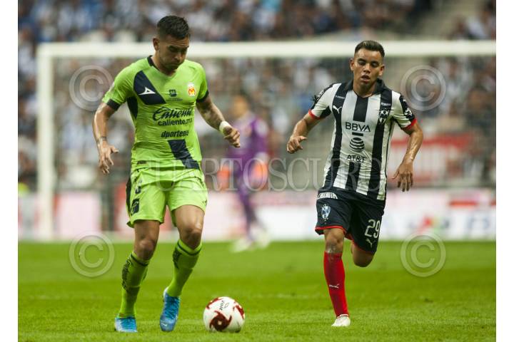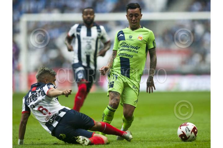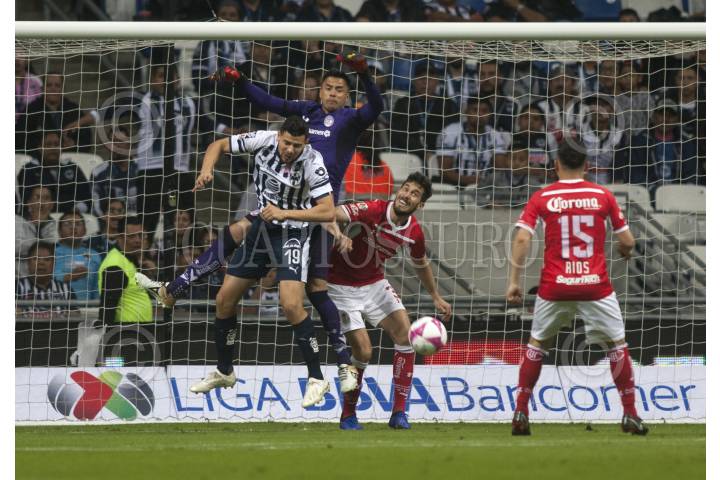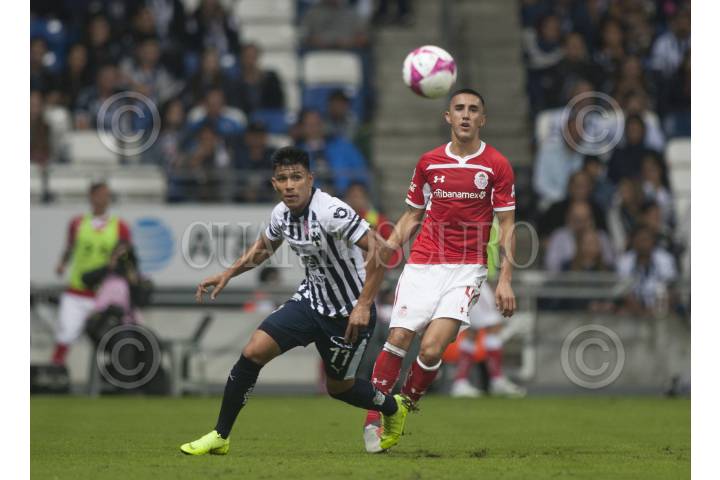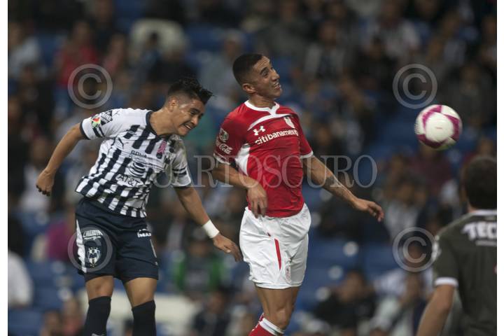 MONTERREY, NUEVO LEÓN, 20OCTUBRE2018.- Luis Guillermo Madrigal del equipo de los Rayados del Monterrey, se disputa el balón con Santiago García del equipo de los Diablos Rojos del Toluca, en el estadio BBVA Bancomer, partido correspondiente a la jornada 13 de la Liga MX, Apertura 2018. Marcador Final: Monterrey: 2 - Toluca: 1 FOTO: GABRIELA PÉREZ MONTIEL /CUARTOSCURO.COM