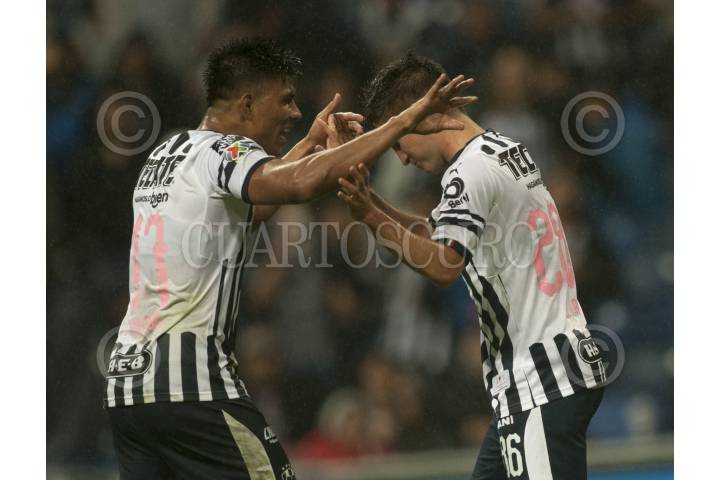MONTERREY, NUEVO LEÓN, 20OCTUBRE2018.- Jugadores del equipo de los Rayados del Monterrey, celebran el segundo gol, ante el equipo de los Diablos Rojos del Toluca, en el estadio BBVA Bancomer, partido correspondiente a la jornada 13 de la Liga MX, Apertura 2018. Marcador Final: Monterrey: 2 - Toluca: 1 FOTO: GABRIELA PÉREZ MONTIEL /CUARTOSCURO.COM