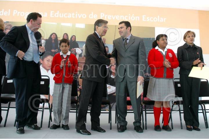 MÉXICO D.F., 09NOVIEMBRE2007.- El subsecretario de eduación básica Fernando Gonzalez saluda a Héctor Rangel presidente del consejo financiero de BBVA-Bancomer durante la presentación del Programa Educativo de Prevención Escolar. FOTO: RODOLFO ANGULO/CUARTOSCURO.COM