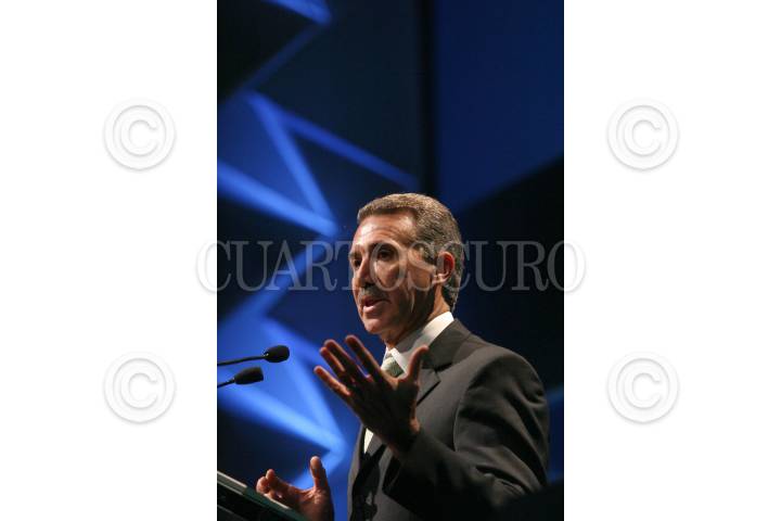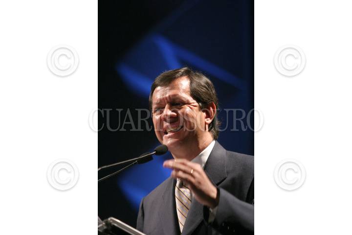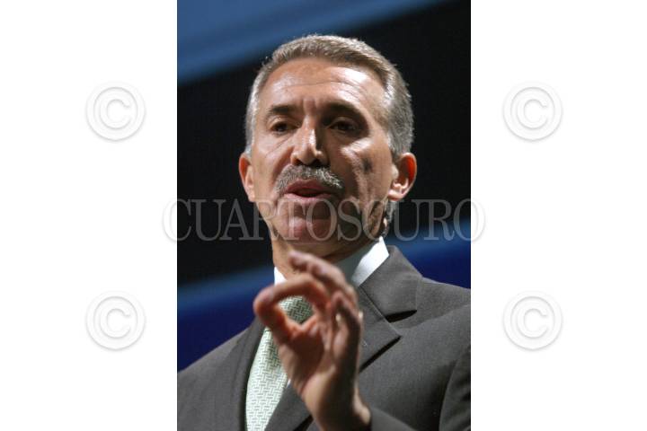 MEXICO, D.F., 07FEBRERO2006.- Roberto Campa, candidato a la presidencia de la República por el Partido Nueva Alianza, asistió a una reunión con los consejeros nacionales del BBVA-Bancomer en la Expo-Bancomer. FOTO: Moisés Pablo/CUARTOSCURO.COM