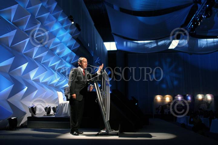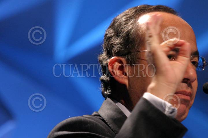 MEXICO, D.F., 07FEBRERO2006.- Felipe Calderon, candidato a la presidencia de la República por el PAN, asistió a una reunión con los consejeros nacionales del BBVA-Bancomer en la Expo-Bancomer. FOTO: Moisés Pablo/CUARTOSCURO.COM
