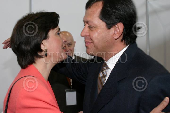 MEXICO, D.F., 07FEBRERO2006.- Patricia Mercado, candidata a la presidencia de la República por Alternativa y Roberto Campa, candidato a la presidencia por el Partido Nueva Alianza, durante la reunión consejeros nacionales del BBVA-Bancomer en la Expo-Bancomer. FOTO: Moisés Pablo/CUARTOSCURO.COM