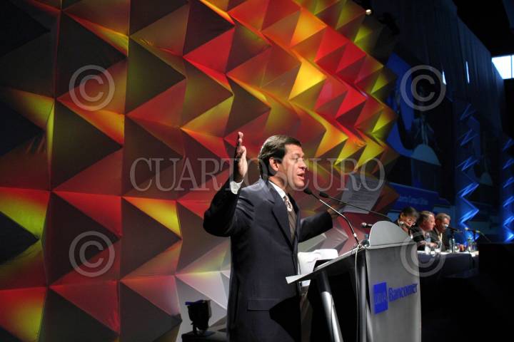 MEXICO, D.F., 07FEBRERO2006.- Roberto Madrazo, candidato presidencial por la Alianza por México PRI-PVEM, asistió a una reunión con los consejeros nacionales del BBVA-Bancomer en la Expo-Bancomer. FOTO: Moisés Pablo/CUARTOSCURO.COM