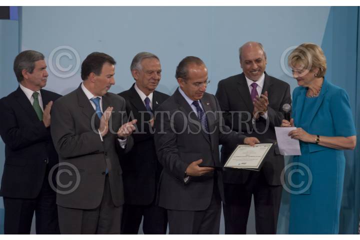 MÉXICO, D.F. 11JUNIO 2012.-Felipe Calderón Hinojosa, presidente de México, encabezó la presentación del Centro de Aprendizaje en Evaluación y Resultados para América Latina (CLEAR), en el Salón Adolfo López Mateos de la Residencia Oficial de Los Pinos. FOTO: JUAN PABLO ZAMORA /CUARTOSCURO.COM