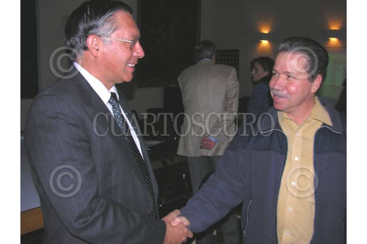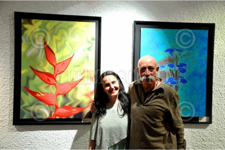 GUADALAJARA, JALISCO, 10JULIO2009.- Maria Di Paola Blum y José Hernádez Claire, fotográfo, durante la inauguración de la exposición de arte digital El laberinto del Iris, el Color y la Forma de la fotógrafa italiana Maria Di Paola Blum en el auditorio Manuel Pérez Anguiano del Instituto cultural Mexicano Norteamericano de Jalisco. Se quedaran en exposición 33 obras de formato medio y grande hasta el 10 de agosto en Guadalajara. FOTO:CUARTOSCURO.COM