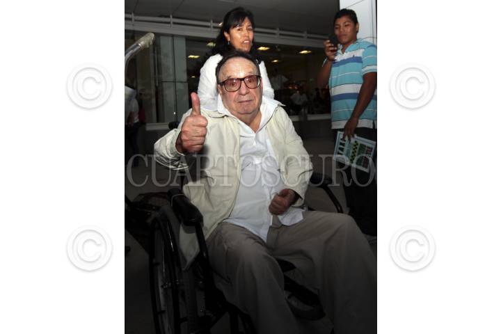 CANCUN, QUINTANA ROO, 21FEBRERO2014.- Imagen de archivo de Roberto Gòmez Bolaños "Chespirito" a su llegada a Cancún, una de las ultimas veces que se le ha visto , que hoy cumple 85 años de vida. FOTO: ELIZABETH RUIZ /CUARTOSCURO.COM