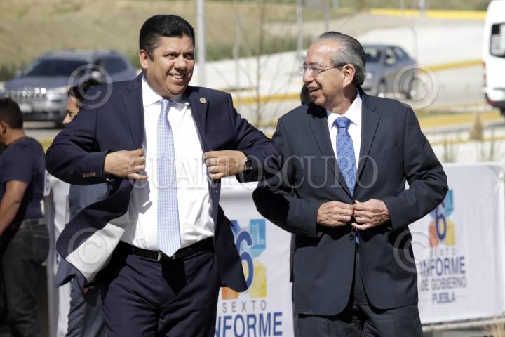 SAN JOSE CHIAPA PUEBLA; 15ENERO2017.- Javier Bolaños, diputado federal del PAN y Luis Arturo Cornejo, subsecretario de gobierno de Puebla, a su llegada al VI Informe del gobernador de Puebla Rafael Moreno Valle en el Centro de Convenciones de la ciudad modelo en San Jose Chiapa. FOTO: HILDA RÍOS/ CUARTOSCURO.COM