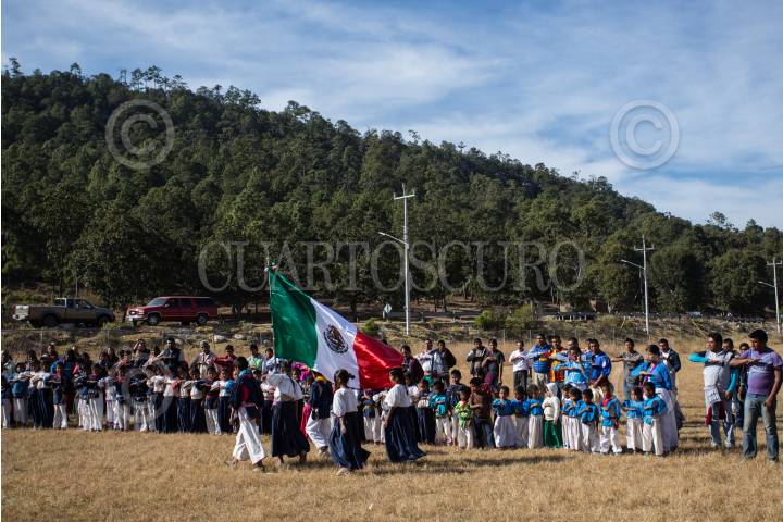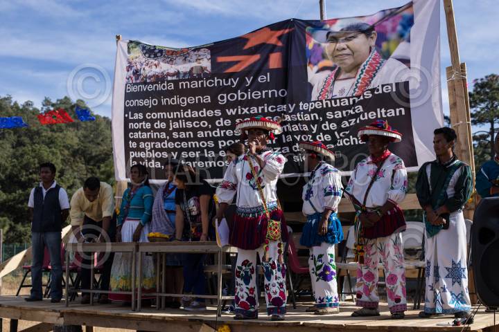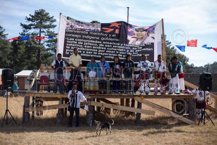 BOLAÑOS, JALISCO, 06DICIEMBRE2017.- Pobladores del pueblo indígena Wixarika de las comunidades de San Sebastian, Santa Catarina, San Andrés Comiata y de Aziueltan, del norte del estado, recibieron a miembros del Concejo Indígena de Gobierno, quienes visitaron la comunidad de Bajío del Tule para plantearles la propuesta del Congreso Nacional Indígena y recabar firmas para que María de Jesús Patricio Martínez, vocera del CIG, puede participar como candidata independiente a la Presidencia de México. FOTO: ADOLFO VLADIMIR /CUARTOSCURO.COM
