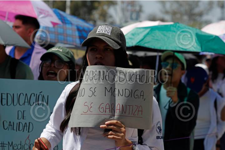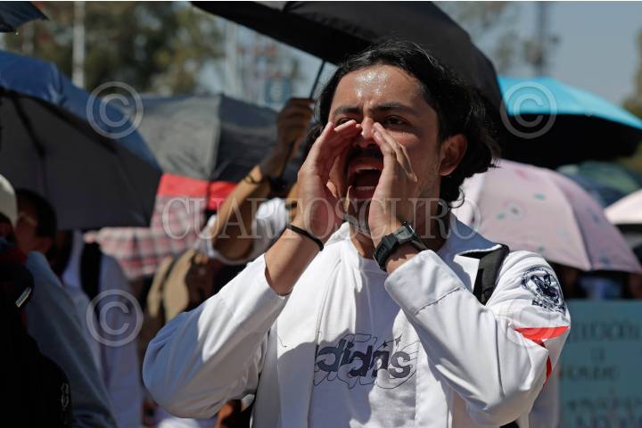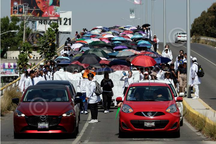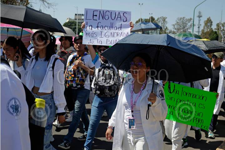 PUEBLA, PUEBLA, 26FEBRERO2025.- Estudiantes de Medicina de la BUAP realizan marcha por segundo día consecutivo, piden mejores maestros y más plazas para realizar prácticas profesionales, entre otras demandas. Alumnos de otras facultades se unieron a ellos en la rectoría de la universidad. FOTO: MIREYA NOVO/ CUARTOSCURO.COM
