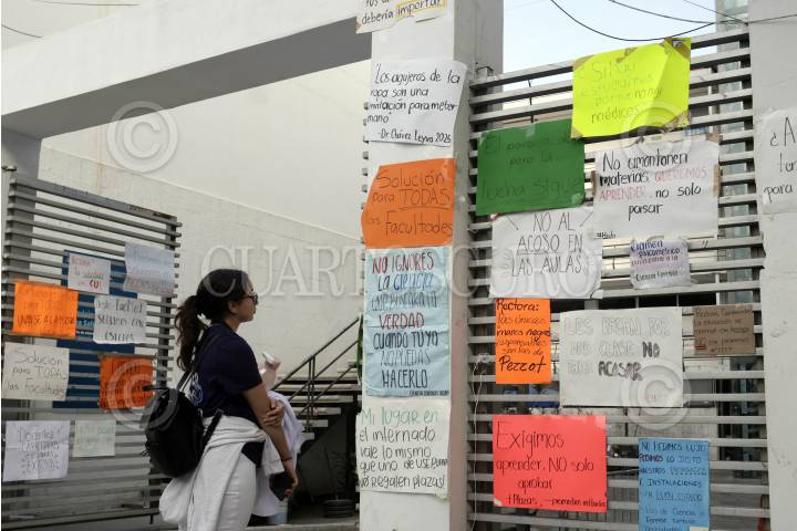 PUEBLA, PUEBLA, 29FEBRERO2025.- A partir de ayer estudiantes de Medicina de la BUAP levantaron paro de la facultad, tras llegar a un acuerdo con autoridades universitarias. Alumnos de otras facultades permanecen en huelga en Ciudad Universitaria hasta que se cumplan sus demandas. FOTO: MIREYA NOVO/ CUARTOSCURO.COM