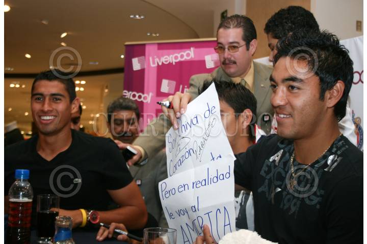 MÉXICO, D.F., 27OCTUBRE2008.- Marco Fabian jugador del equipo de las Chivas durante la firma de autografos que dieron algunos integrantes de las chivas en una tienda departamental de la ciudad de Mñexico. FOTO: SÁSHENKA GUTIÉRREZ/CUARTOSCURO.COM