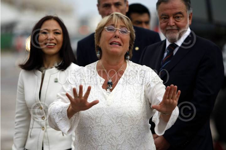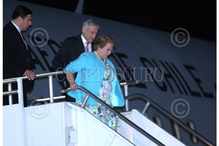 MÉXICO, D.F., 12AGOSTO2015.- Michelle Bachelet Jeira, presidenta de Chile, a su arribo a al hangar presidencia en su visita de Estado al país. FOTO: ADOLFO VLADIMIR /CUARTOSCURO.COM
