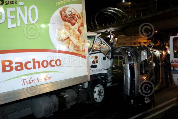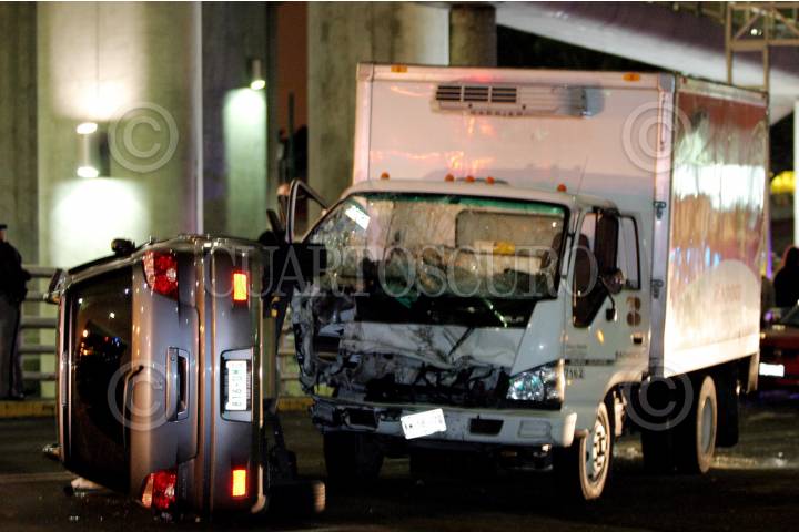 MÉXICO, D.F., 10SEPTIEMBRE008.- Por segundo día consecutivo en el Distrito Federal, un camión de la empresa "Bachoco" se ve involucrado en un accidente, en esta ocasión el exceso de velocidad provoco la doble volcadura en la avenida san jerónimo y el anillo periférico sur, con saldo de cuatro personas gravemente lesionadas. FOTO: LUZ ACEVEDO/CUARTOSCURO.COM