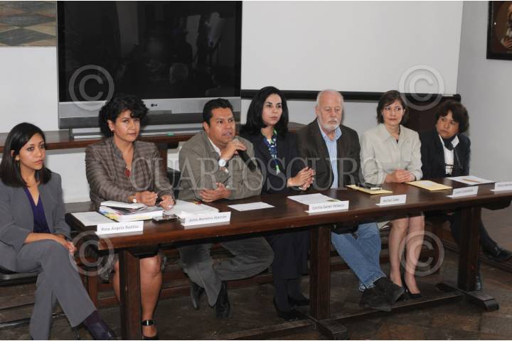 TEPOTZOTLÁN, ESTADO DE MÉXICO, 10SEPTIEMBRE2009.- Rosa Ángela Badillo, Alma Montero, Cecilia Genel, Michel Zabé, Laura Castañeda y Alicia Martínez, durante el anuncio de la exposición "Miradas Congeladas Guillermo Kahlo y los Fotógrafos Contemporaneos", en el Museo Nacional del Virreinato. FOTO: ARTURO LÓPEZ/CONACULTA/CUARTOSCURO.COM