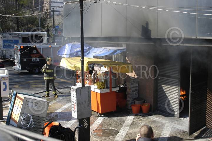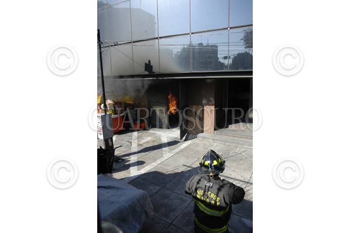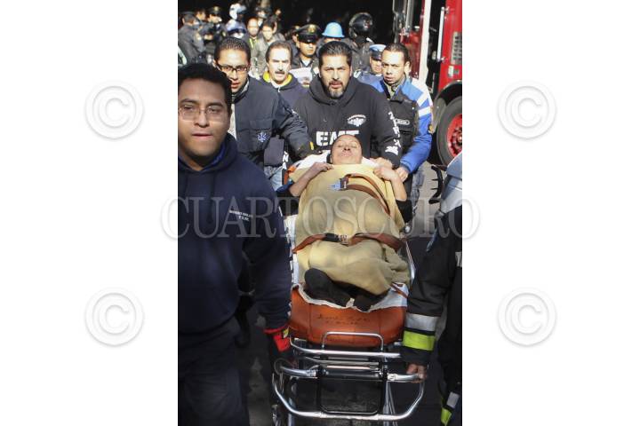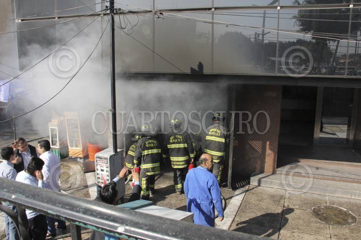 MÉXICO, D.F., 25NOVIEMBRE2011.- Fuerte movilización policíaca y de servicios de emergencia se registro en las inmediaciones de la calle Basilio Badillo en la colonia Tabacalera al estallar un transformador de energía eléctrica ubicado en el interior de un edificio. Elementos de bomberos lograron controlar las llamas que salían de este lugar en donde una mujer resulto con lesiones leves por quemaduras. FOTO: LUIS CARBAYO/CUARTOSCURO.COM