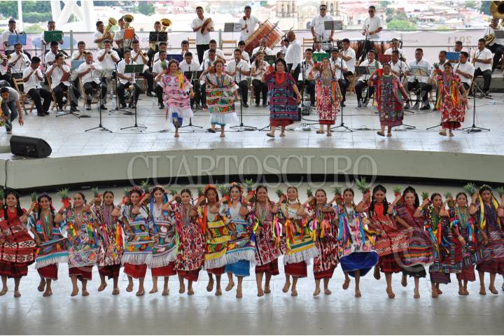 OAXACA, OAXACA, 01AGOSTO2011.- Ante más de 15 mil personas se realizó la 79 celebración del primer lunes del Cerro La Guelaguertza que deviene del Zapoteco y que significa Dar, regalar o compartir y que es considerada como la máxima fiesta de los Oaxaqueños. FOTO: PEDRO VALTIERRA/CUARTOSCURO.COM