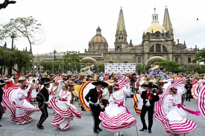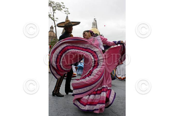 GUADALAJARA, JALISCO, 03SEPTIEMBRE2011.- Cientos de parejas de baile concursaron para romper el Récord Guinness del mayor número de grupos folclóricos bailando por algunos minutos. Esto se llevó acabo en la Plaza de la Liberación de Guadalajara. FOTOS: FERNANDO CARRANZA GARCIA/CUARTOSCURO.COM