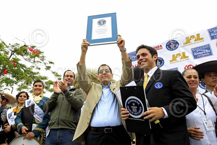 GUADALAJARA, JALISCO, 03SEPTIEMBRE2011.- Miguel Alfaro Araguren, presidente de la Canaco, recibió a nombre de Jalisco el certificado del Récord Guinness. Cientos de parejas de baile concursaron para romper el Récord Guinness del mayor número de grupos folclóricos bailando por algunos minutos. Esto se llevó acabo en la Plaza de la Liberación de Guadalajara. FOTOS: FERNANDO CARRANZA GARCÍA/CUARTOSCURO.COM
