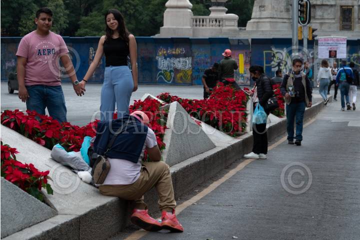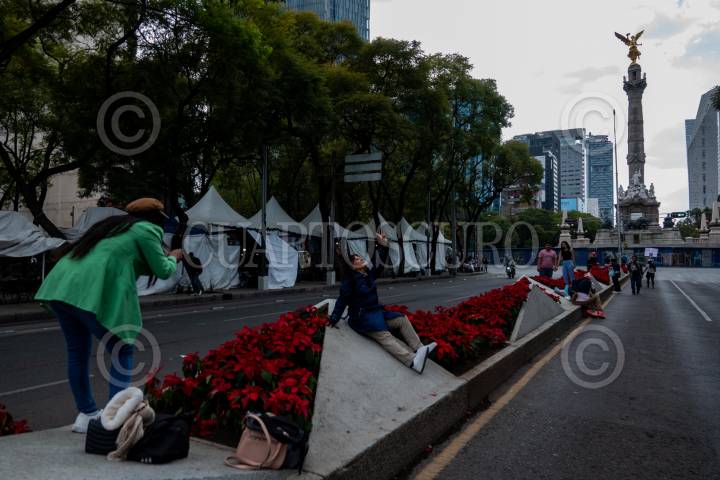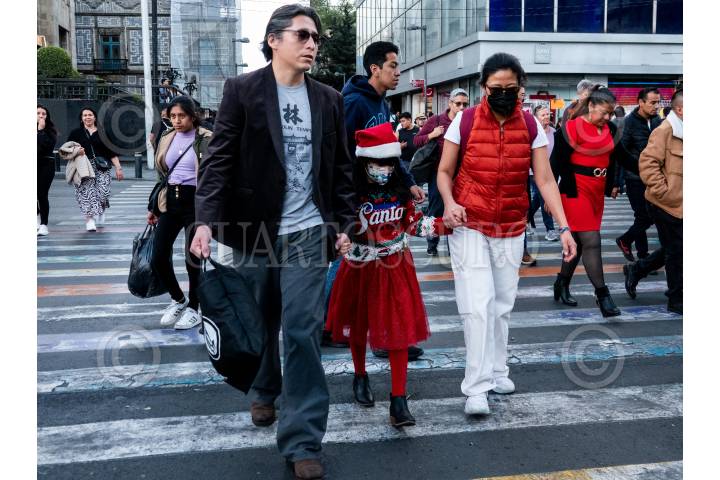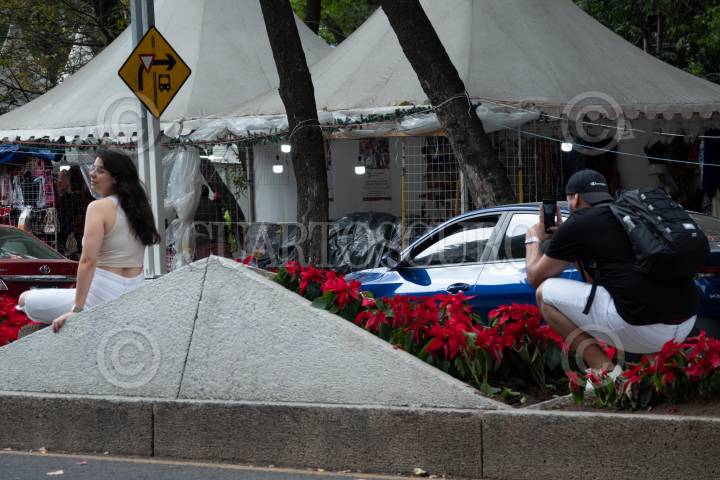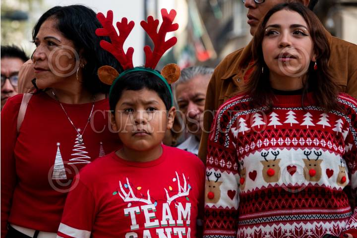 CIUDAD DE MÉXICO, 24DICIEMBRE2023.- Turistas nacionales y locales recorren las calles de la ciudad durante el día de Nochebuena. Mientras algunas personas aprovechan para sacarse fotos en Paseo de la Reforma, otras recorren las calles del Centro Histórico con algún detalle alusivo a las fechas decembrinas. FOTO: GALO CAÑAS/CUARTOSCURO.COM