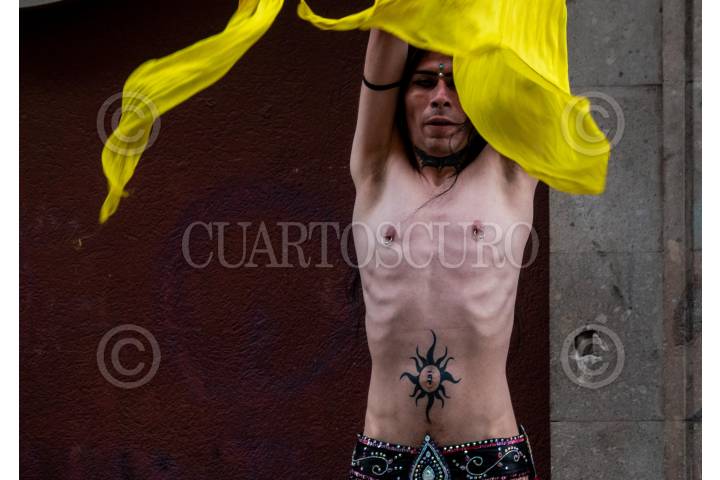CIUDAD DE MÉXICO, 24DICIEMBRE2023.- Un bailarín de danza árabe da una presentación callejera en la zona centro durante el día de Nochebuena. FOTO: GALO CAÑAS/CUARTOSCURO.COM